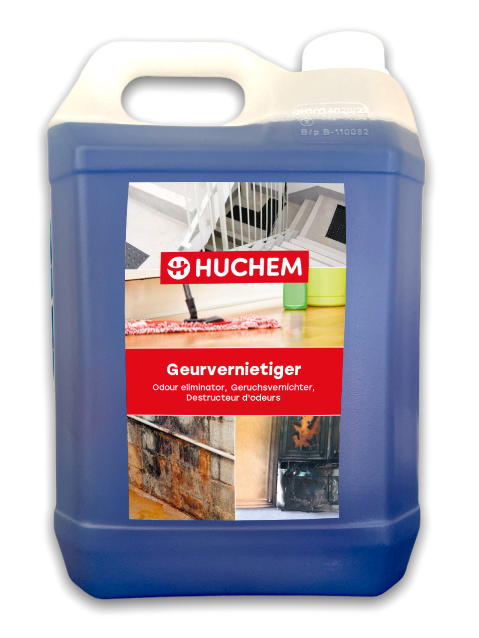In addition, the product functions excellently as a cleaner and leaves a streak-free surface after use. The surfactants are more than 90% biodegradable according to the relevant OECD test. Huchem Odor Destroyer has a pleasant lavender scent and is supplied in a 5-liter can.