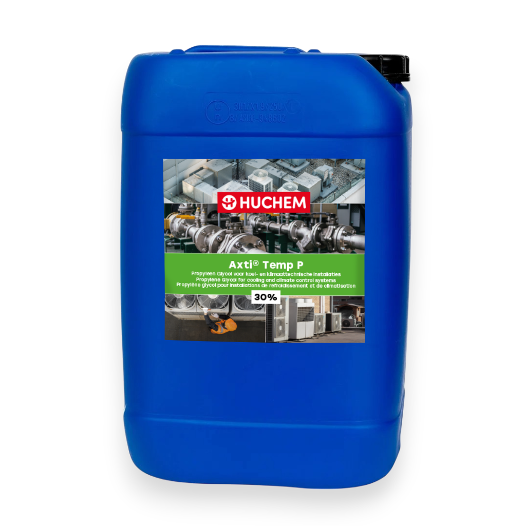 Special Propylene Glycol, Axti Temp P, for refrigeration and heating systems. This product is based on hygroscopic, environmentally compatible Propylene Glycol. It contains inhibitors and low-foaming additives to prevent rust and limescale deposits and is non-corrosive, which protects the inner walls of pipes against corrosion and product aging, even in aluminum pipes. The fluid can be easily added to systems already equipped with a Propylene Glycol-based coolant. It is virtually odorless, slightly sticky, easily miscible with demineralized water, and non-volatile.
