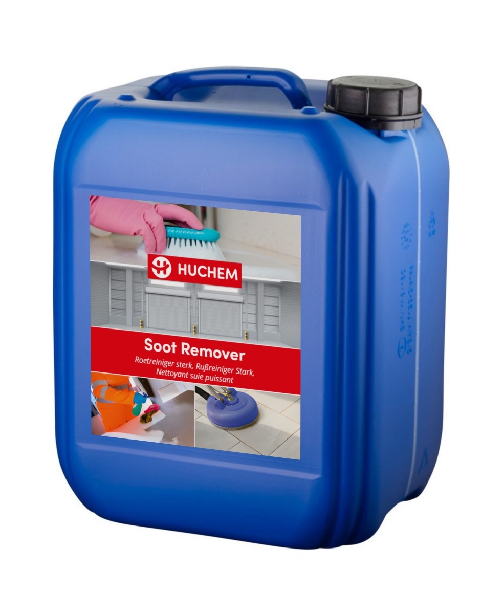 Huchem Heavy-Duty Soot Cleaner is specially developed for the removal of black deposits (soot), nicotine, and stains caused by fire, exhaust fumes, stoves, or ovens. It can be used on a variety of surfaces such as metals, walls, and ceilings. The cleaner can also be used for cleaning up after fire damage.