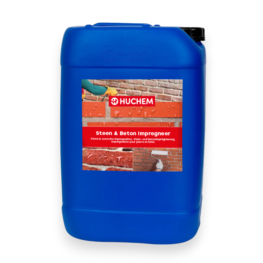 Huchem Steen en Beton Impregnator is a water-based impregnating agent based on siloxanes and silanes. Water-based means that no harmful solvents are used, making the product safe and easy to use. It is also UV-resistant and breathable.